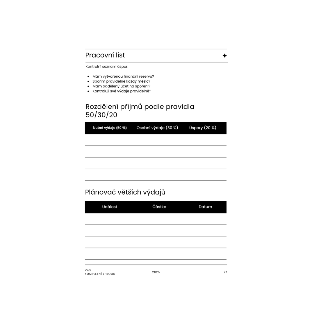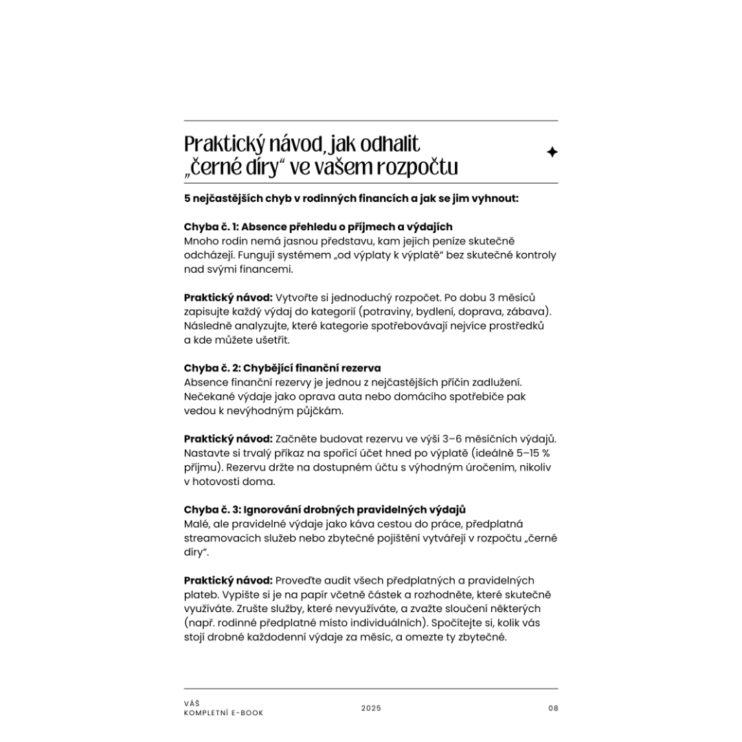 ✅ Jasné návody, jak analyzovat své výdaje a najít skryté rezervy
